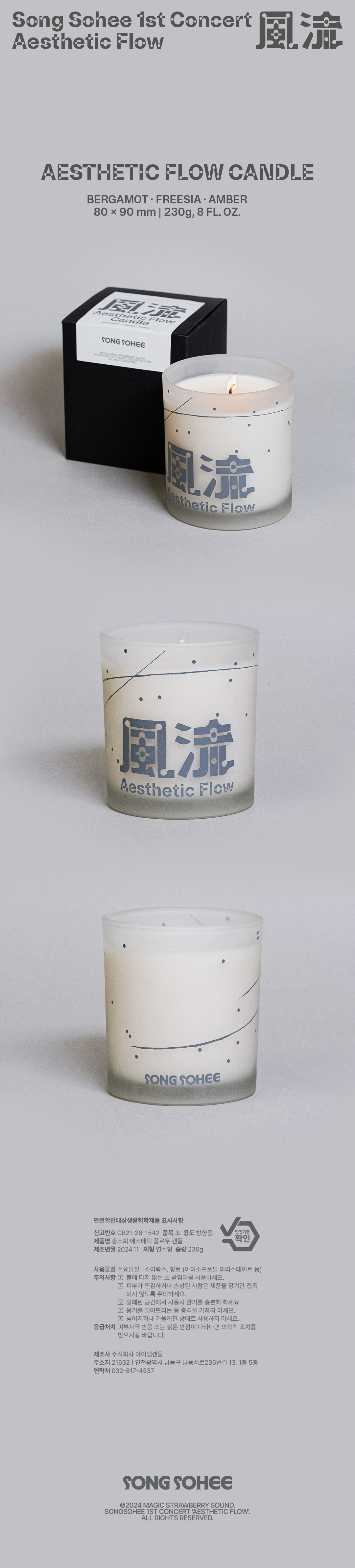 송소희의 첫 단독공연 〈風流 (풍류)〉의 향을 담은 소이왁스 캔들입니다. 송소희가 직접 선택한 프레시 플로럴 우디향으로, 마치 바람이 부는 것과 같은 편안함을 느끼실 수 있습니다.